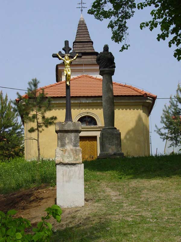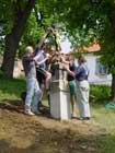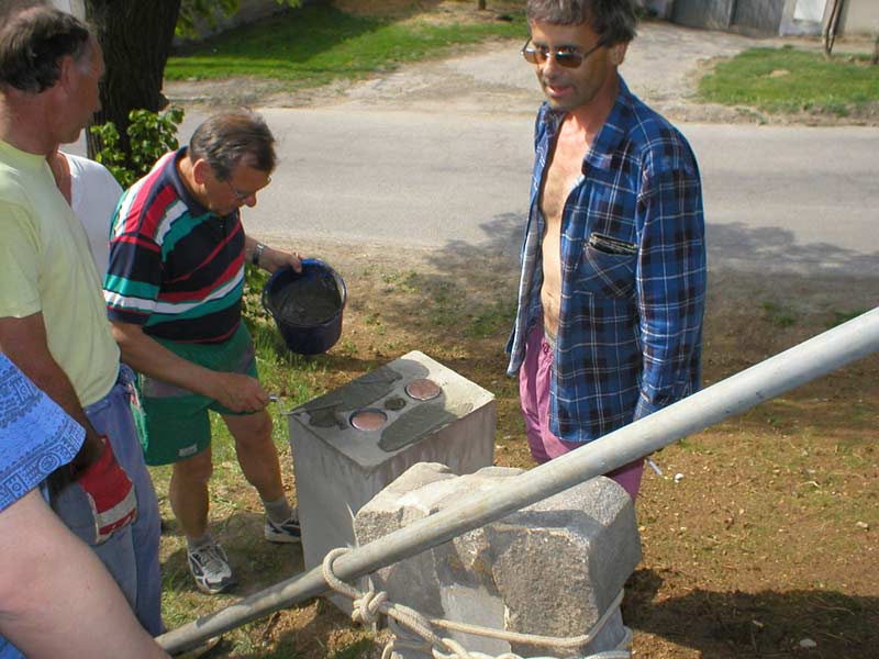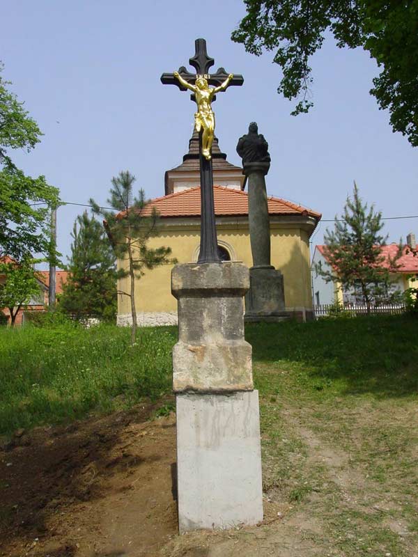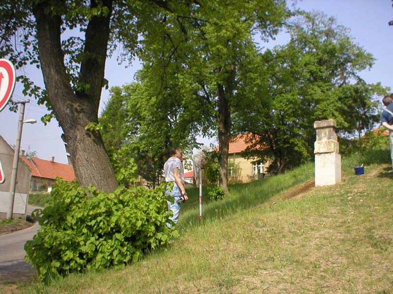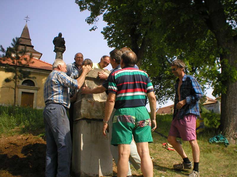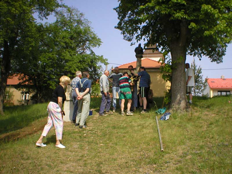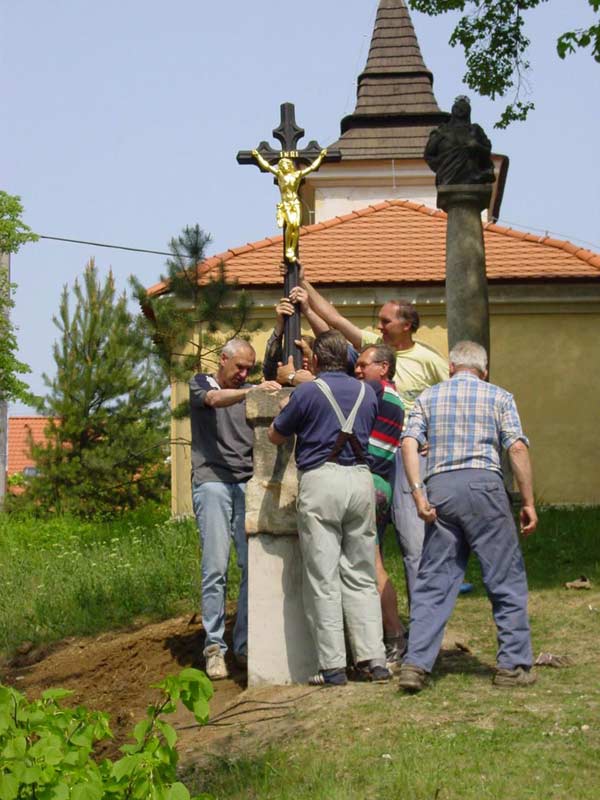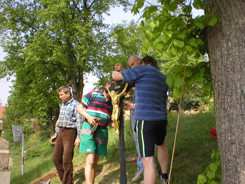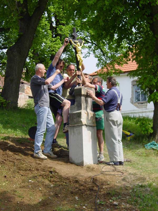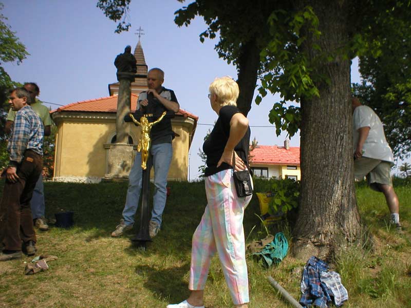 Fotografie pořízené 8.5.2003 při osazování křížku před bělockou kapličkou sv. Floriána. Fotili Zd. a Jos. Pupcsikovi a Jakub Vondráček (fotografie „na výšku“ a první fotografie pod nimi „na šířku“)