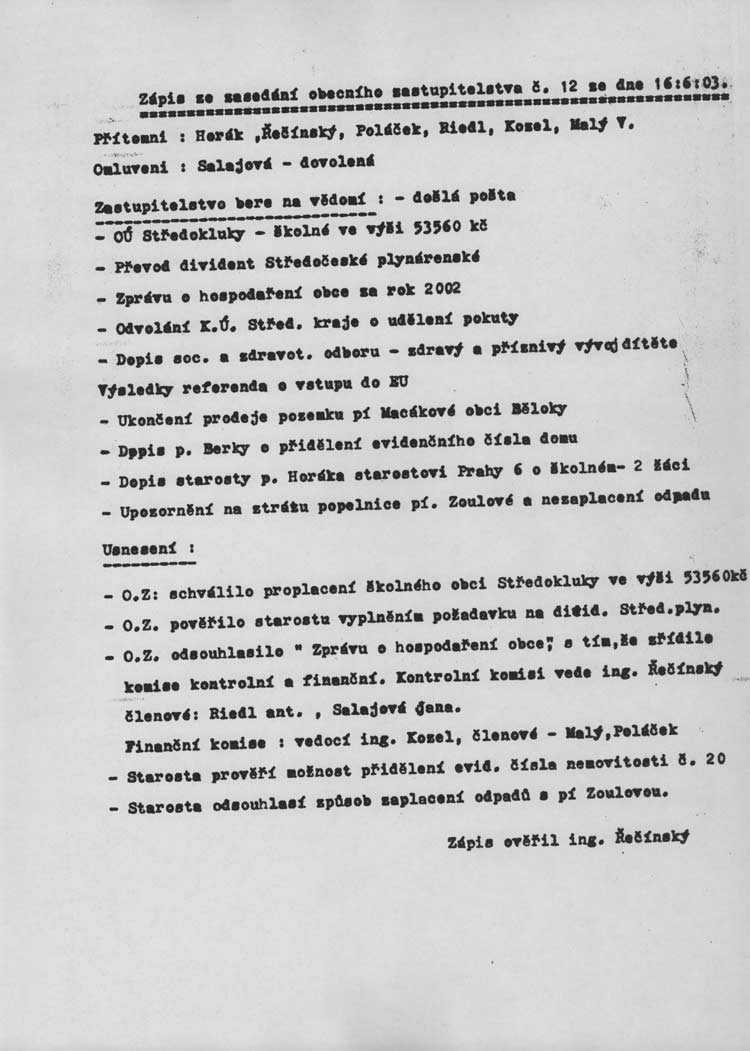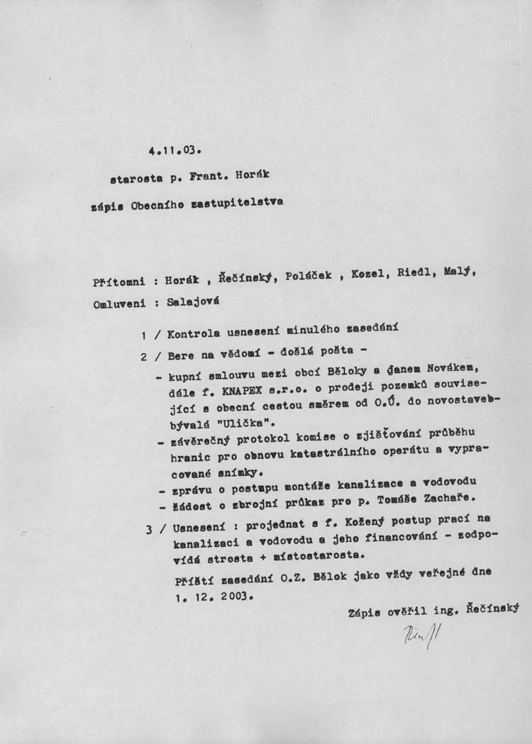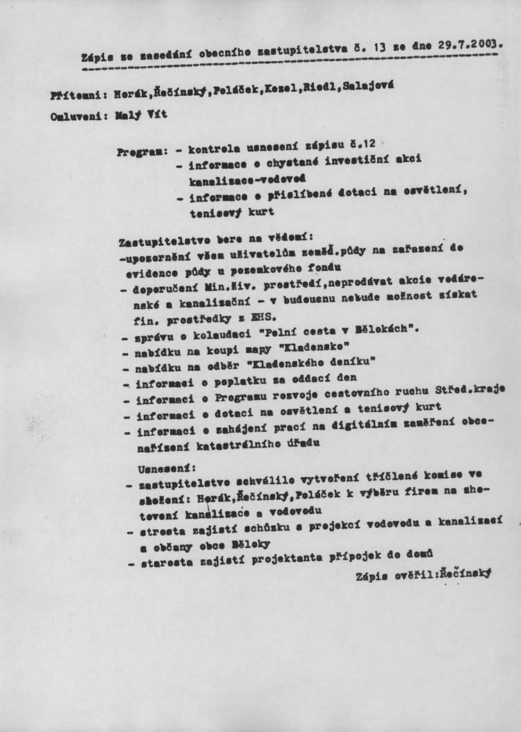 Informace Obecního úřadu Běloky Informace OÚ | Zápisy ze zasedání | Zápisy z komise | Volby